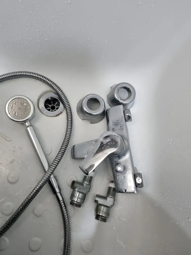 욕조 수전 본체까지 교체하는 경우 작업이 더 복잡해집니다. 벽 속에 매립된 배관과 연결되어 있어 수전을 벽에서 분리해야 합니다. 수전과 배관 연결부는 벽 안쪽에 있어 직접 보이지 않는 경우가 많습니다. 플랜지를 제거하고 수전 본체를 조심스럽게 분리하는데, 배관이 함께 돌아가지 않도록 고정하면서 작업해야 합니다.